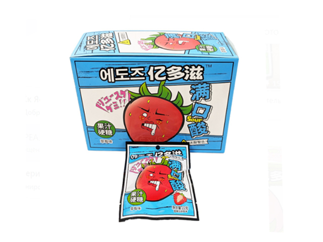 Конфета арт. 640084-3 Жевательная кислая "Клубника" 22 г 20 шт. голубая кор.;*
