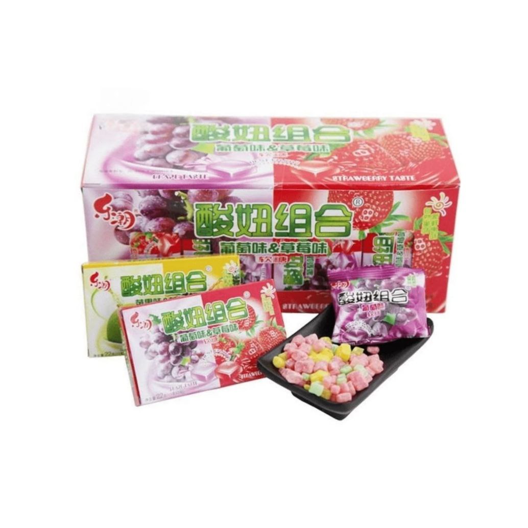 Конфета арт. 840711-1/840704-1 Жевательная кислая "2 вкуса: виноград+клубника" 14 г 20 шт в кор.'*#,