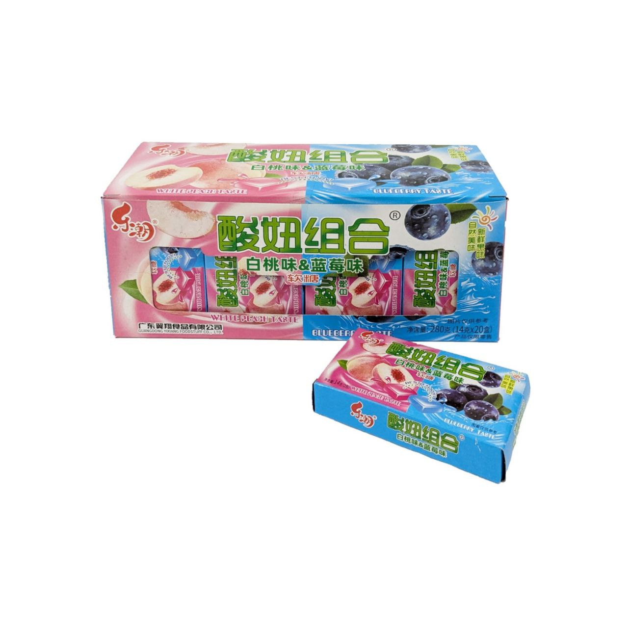 Конфета арт. 840711-4/840704-4 Жевательная кислая "2 вкуса: персик+черника" 14 г 20 шт. в кор.*,