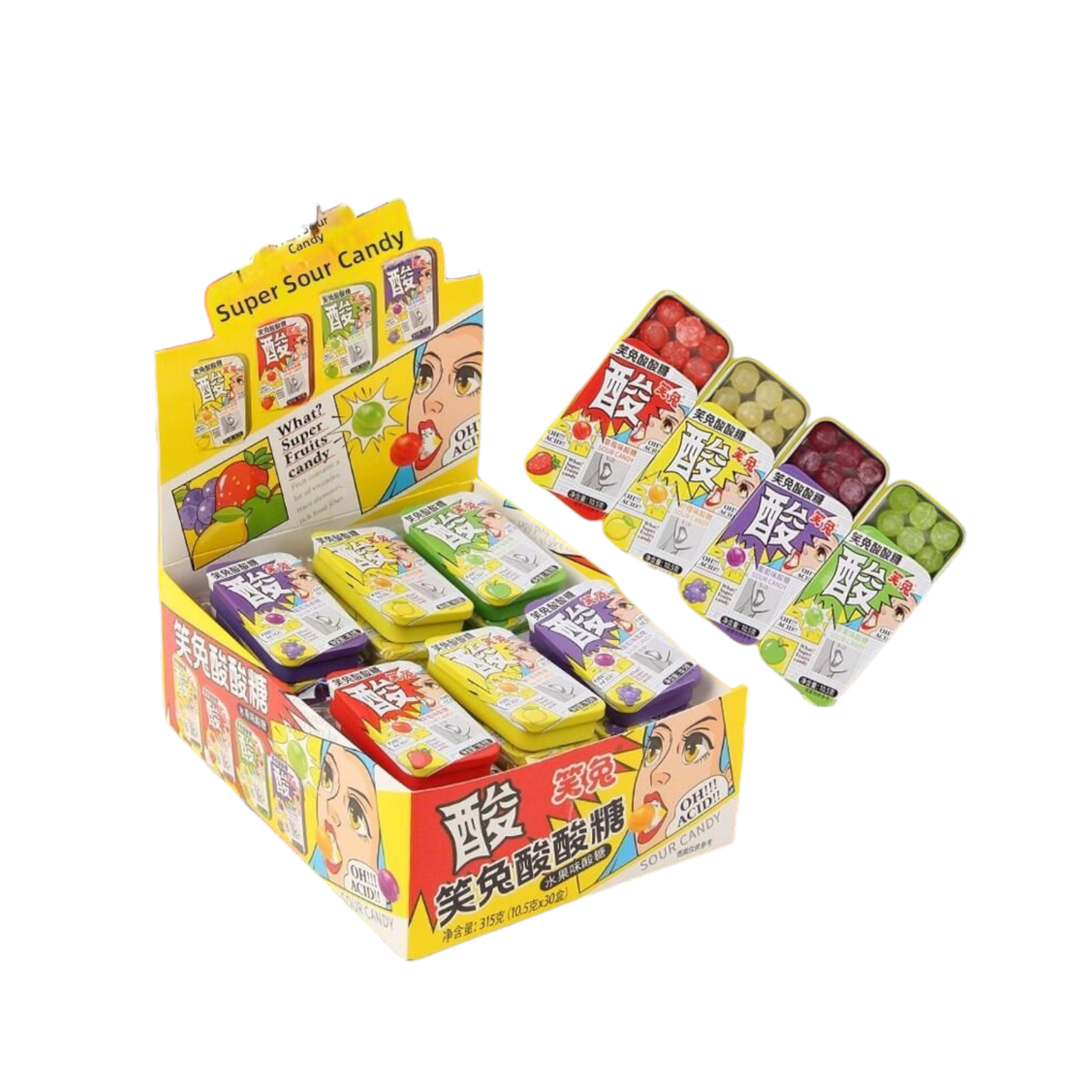 Конфета арт. 300505/300499 Драже кислое Вкусы микс 10,5 г в кейсе 30 шт. в кор.'