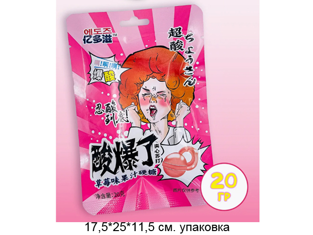 Конфета арт. 640206-1 Суперкислая "Персик" 20 г 20 шт. в розовой кор./*