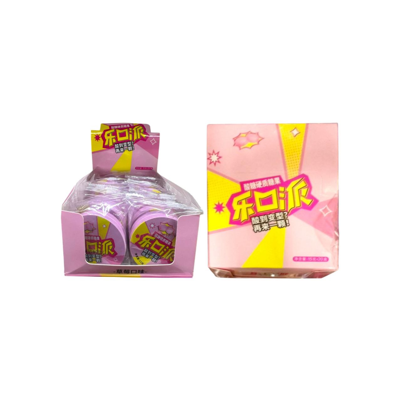 Конфета арт. 771209-2/770875-2 Суперкислая "Клубника" 15 г в банке 20 шт. в розовой кор.'