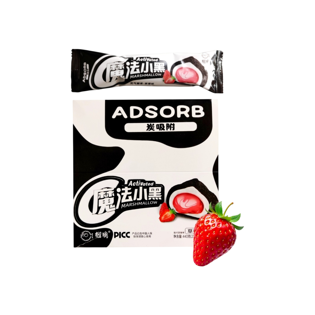 Маршмеллоу арт. 261419/ С начинкой "Клубника" и кокосовым углем 22 г 20 шт. кор.*
