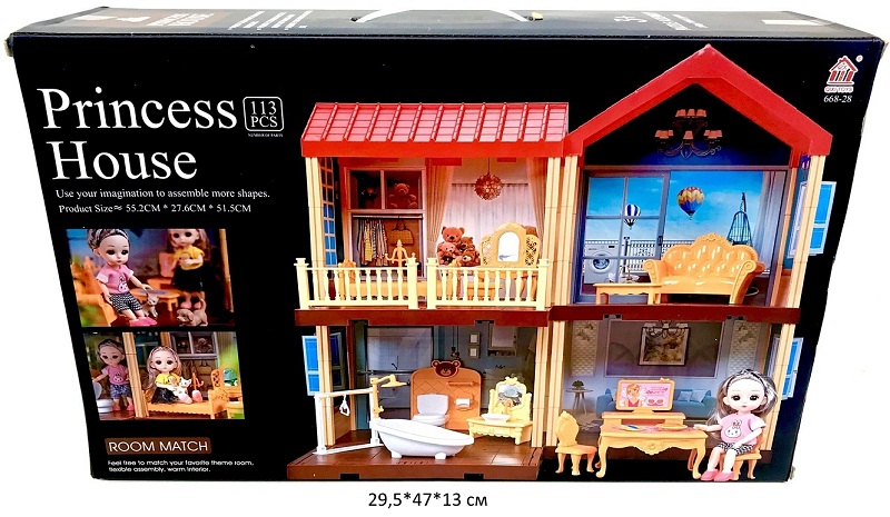 Дом для кукол арт. 668-28A Двухэтажный с мебелью 113 дет. в кор._/12шт./