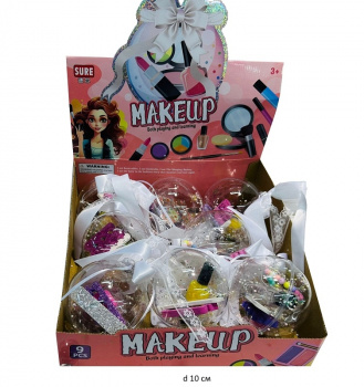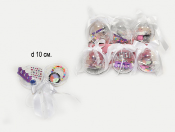 Размер шара: d 10 см385.17 руб. - Набор косметики арт. 50011 "Подарок" в шаре (9 шт.) шоубокс•×Набор косметики арт. 50011 "Подарок" в шаре (9 шт.) шоубокс•Небольшой набор детской декоративной косметики и украшений упакованный в новогодний шар станет чудесным сюрпризом и идеальным подарком для маленькой модницы.