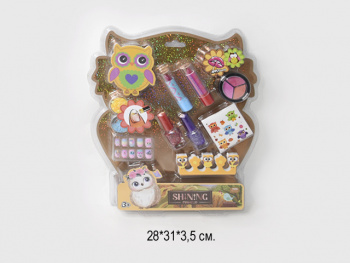 Размер упаковки: 31 х 28 х 4 см986.02 руб. - Набор косметики арт. 6124 "Сова" лак,ногти,наклейки,тени,помады на блистере.~/72шт./×Набор косметики арт. 6124 "Сова" лак,ногти,наклейки,тени,помады на блистере.~/72шт./Набор детской декоративной косметики - это яркий и интересный подарок для каждой девочки. С помощью набора можно создать красивый макияж, маникюр и педикюр. В наборе 2 помады и 3 оттенка блесков для губ (блеск можно использовать как кремовые тени для глаз и румяна) для создания повседневного или праздничного мейк-апа. Образ дополняют 2 ярких лака для ногтей, блестки для декора и накладные ногти. В набор входят так же красочные татуировки в виде совушек, которые очень легко можно нанести на руки или другие участки тела. Идеальный набор для маленьких принцесс!