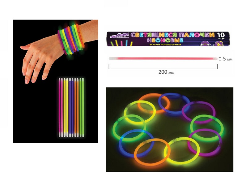 кс_Палочки-браслеты арт. 662595 Светящиеся (неоновые) ЮНЛАНДИЯ набор 10 шт. в тубе, ассортикс_Палочки-браслеты арт. 662595 Светящиеся (неоновые) ЮНЛАНДИЯ набор 10 шт. в тубе, ассорти