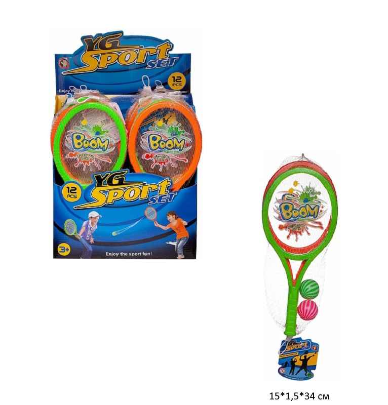 Бадминтон арт. YG26G Набор 2 ракетки, 2 шара в сетке (12 шт.) в кор._