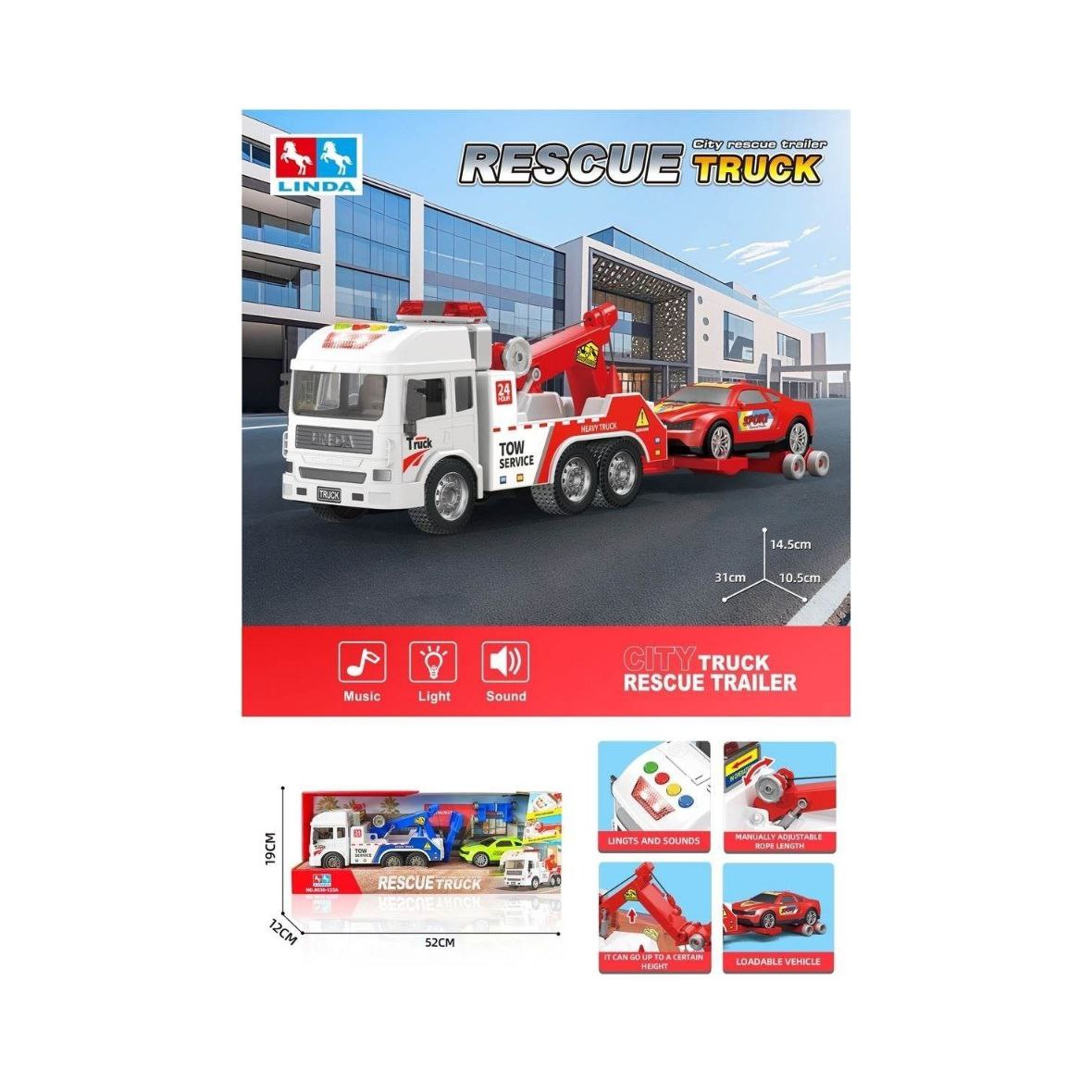 Машина инерц. арт. 8030-123A Эвакуатор с машиной свет, звук в кор. 52*12*19