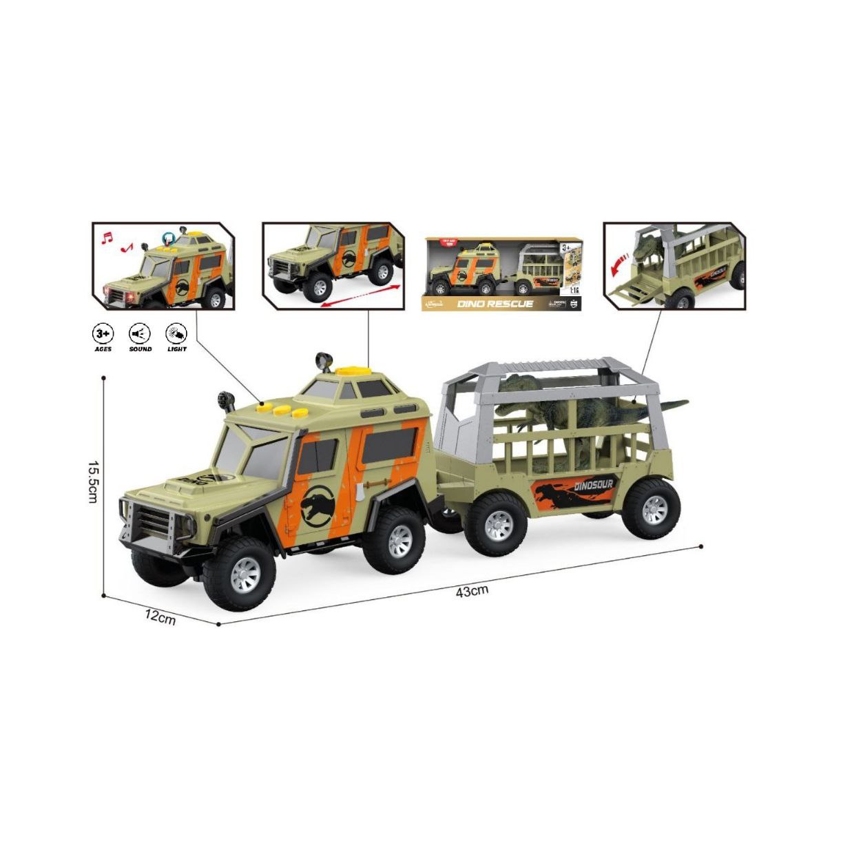 Машина инерц. арт. WY1163A Джип-сафари с прицепом и динозавром, свет, звук в кор. 45,7*12,8*18,5