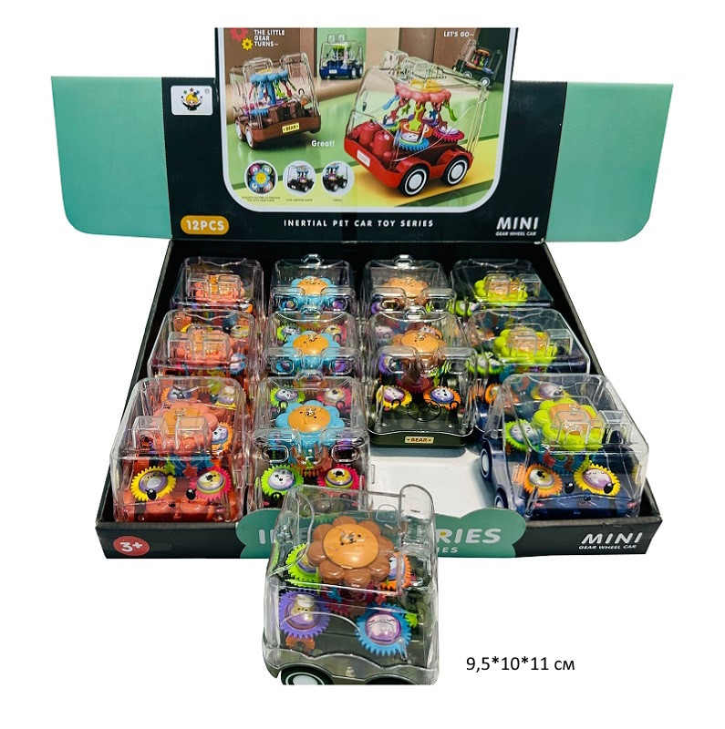 Машина инерц. арт. HC-212 "Зверюшка-карусель" прозрачная, шестеренки (12 шт.) шоубокс•