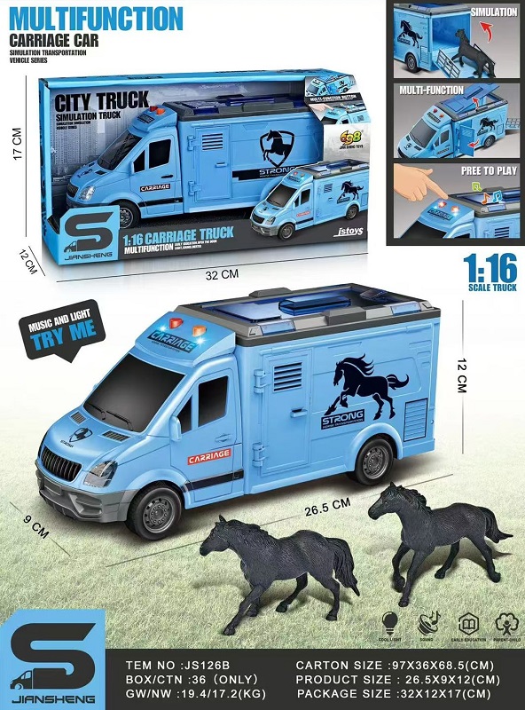 Машина на батар. арт. JS126B Грузовик-коневоз с фигурками лошадей, свет, звук в кор.)