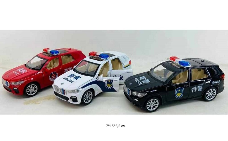 Модель металл. арт. 1900-41RU BMW Пожарная, Полиция свет, звук (12 шт.) шоубокс~
