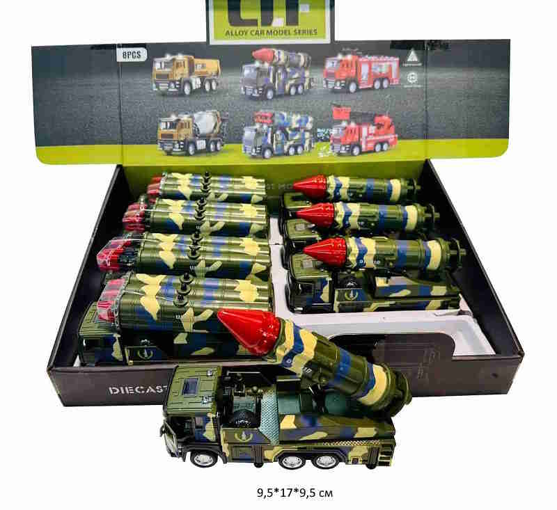 Модель металл. арт. 8223A Ракетоносец в ассортименте свет, вращение (8 шт.) шоубокс•