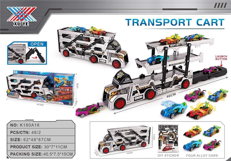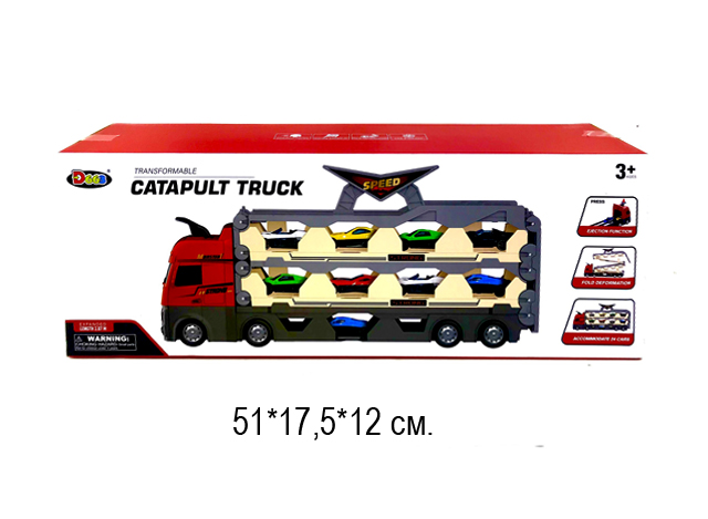 - Набор машин арт. D663-T202 Автовоз-трансформер с катапультой в кор._/24 шт./×Набор машин арт. D663-T202 Автовоз-трансформер с катапультой в кор._/24 шт./Тягач-трансформер - первоклассный помощник в проведении гонок. Он создан специально для доставки легковых автомобилей к местам проведения соревнований. Принцип игры прост: потяните за ручку и автовоз разложится в прямую линию. Теперь машинки могут выезжать!