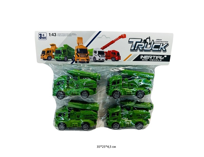 Размер упаковки: 29 х 12 х 3 см689.73 руб. - Набор машин арт. 787-15 Военная техника 4 шт. металл на листе)×Набор машин арт. 787-15 Военная техника 4 шт. металл на листе)Набор из 4 металлических машинок в виде военной техники, каждая из которых имеет свой цвет и дизайн. Машинки подходят для игры с треками. Их колеса быстро вращаются, корпус обладает идеальным весом и формой, чтобы набирать высокую скорость.