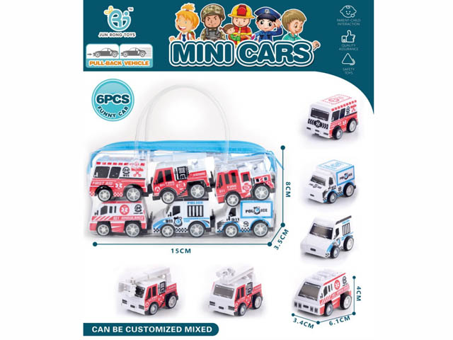 - Набор машин арт. 738M-2" Городские службы инерц. 6 шт. в пак. 15*3,5*8×Набор машин арт. 738M-2" Городские службы инерц. 6 шт. в пак. 15*3,5*8Набор инерционных машинок "Городские службы" понравятся детям дошкольного и младшего школьного возраста. В набор входят 6 ярких машинок различных городских служб. Чтобы машинки рванули с места, их нужно всего лишь немного оттянуть назад и отпустить. Играя с ними, ваш ребенок не только интересно проведет свободное время, но и будет развивать мелкую моторику рук. С машинками можно не только увлекательно играть, но и коллекционировать, собирая свой автомобильный парк. Набор упакован в удобную сумку для хранения.