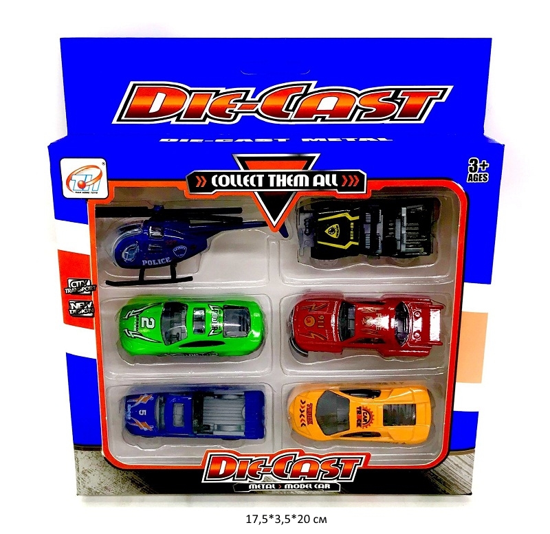 - Набор машин арт. TH8535E С вертолетом металл 6 шт. в кор._×Набор машин арт. TH8535E С вертолетом металл 6 шт. в кор._Супер набор транспорта в который входят 5 красочных гоночных машинок и 1 полицейский вертолет.