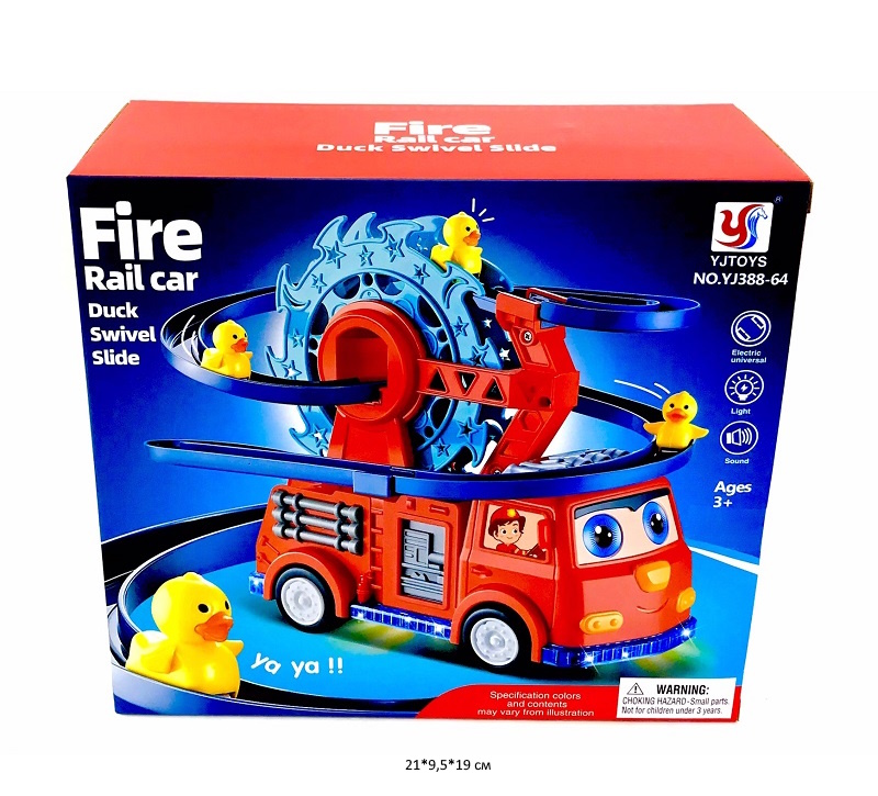 Машина на батар. арт. YJ388-64 Пожарная "Утиная карусель" свет, звук в кор._