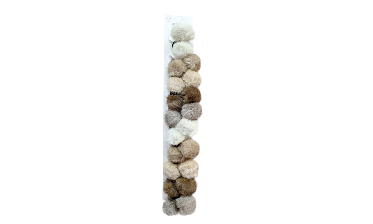 Резинка для волос арт. 709036 Сердце на меховом шарике в бежевых тонах 10 пар на листе