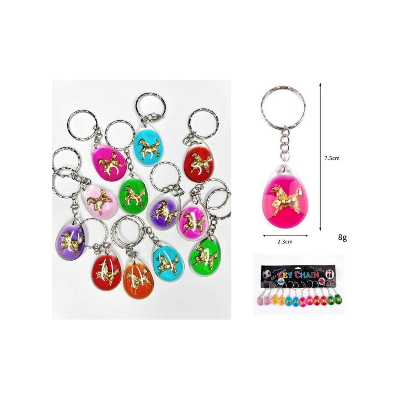 Брелок арт. GH-44-709/GK-7944 Лошадь золотая в смоле цвета микс 12 шт. на листе