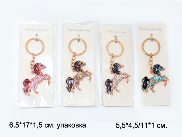 Брелок арт. KLC6229-709 Лошадь стразы металл цвета микс (12 шт.) в пак.