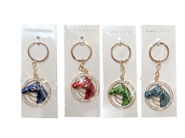 Брелок арт. KLC6228-709 Голова лошади стразы металл цвета микс (12 шт.) в пак.