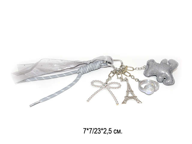 Брелок-подвеска арт. 209301 Медведь мягкий серебряный 7 см 1 шт в пак.